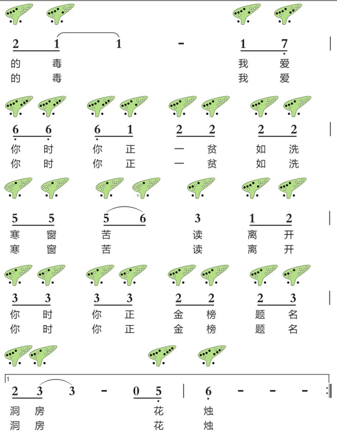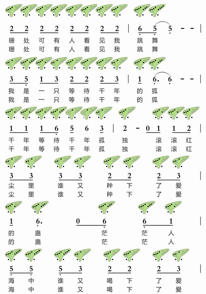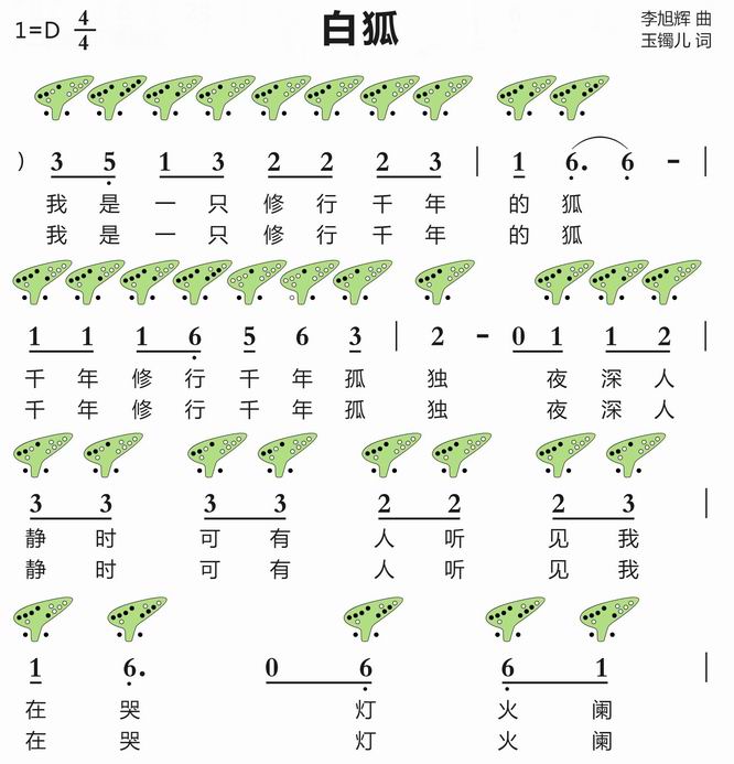 十二孔陶笛曲谱《白狐》,聊斋爱情故事!