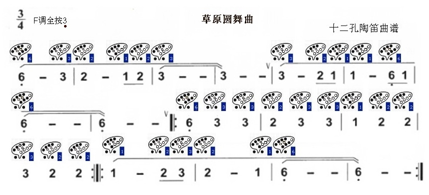 十二孔陶笛曲谱《草原圆舞曲》,辽阔草原美如画!
