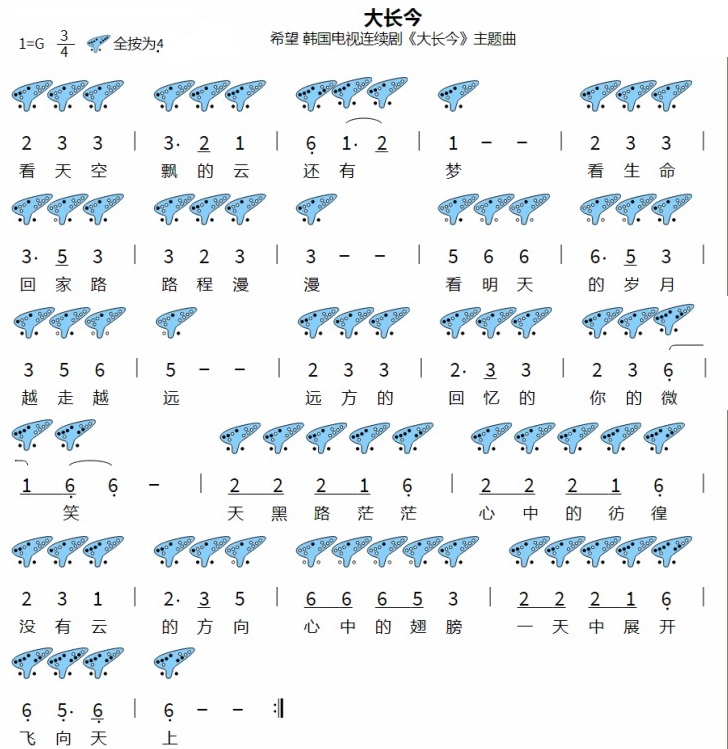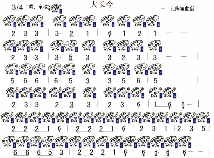 十二孔陶笛曲谱《大长今》,韩国电视连续剧主题曲!