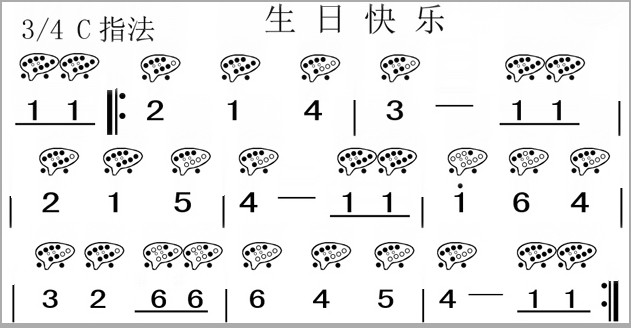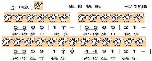 十二孔陶笛曲谱《生日快乐》,祝你生日快乐!