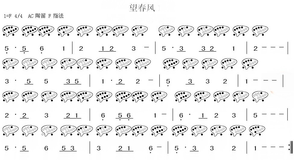 十二孔陶笛曲谱《望春风》,等待何时君来采!