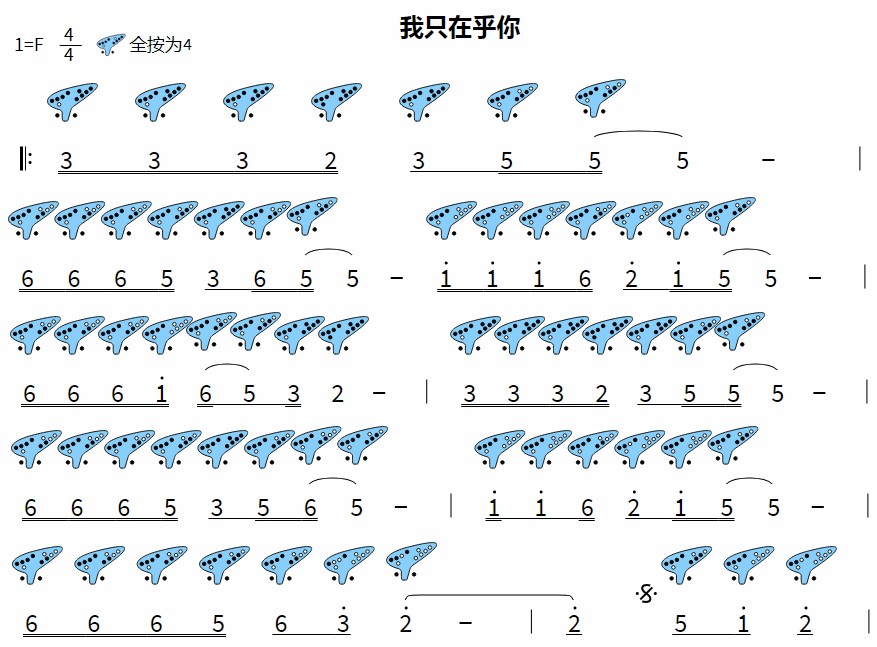 十二孔陶笛曲谱《我只在乎你》,你是我唯一!