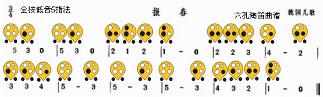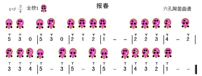 >>六孔陶笛曲谱《报春》,德国民歌!