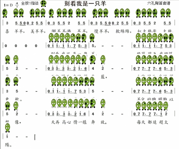 六孔陶笛曲谱别看我是一只羊