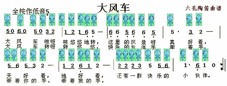 六孔陶笛曲谱大风车