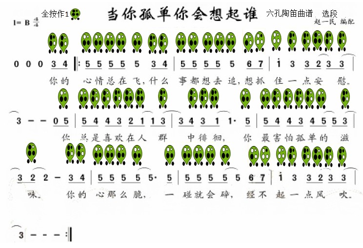 六孔陶笛曲谱当你孤单你会想起谁