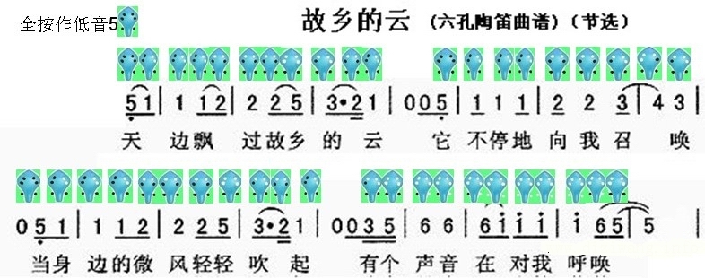 六孔陶笛曲谱故乡的云