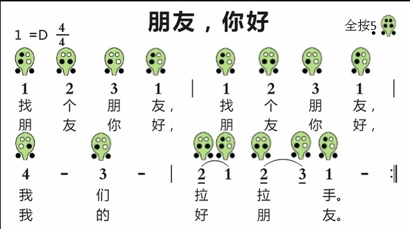 六孔陶笛曲谱《朋友,你好》,有趣的儿童歌曲!