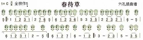 六孔埙曲谱春待草